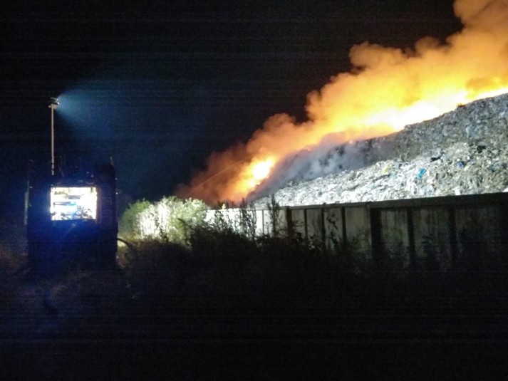 Вказано, що 25 вересня о 22:05 до Служби порятунку надійшло повідомлення про загорання на території полігону твердих побутових відходів.