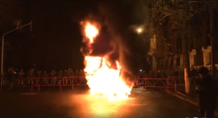 Після цього протестувальники під Адміністрацією президента на Банковій запалили шини. На відео, оприлюдненому рухом «Визволення», видно нардепа Єгора Соболєва та велику групу силовиків та спецслужбовців.