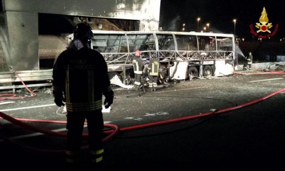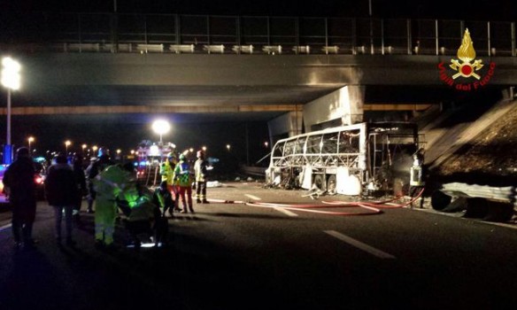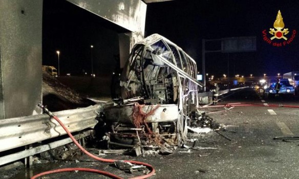 Аварія сталася вночі в комуні Сан-Мартіно-Буон-Альберго в провінції Верона. Автобус, який повертався з Франції в Угорщину через територію Італії, врізався в стовп і загорівся. За попередньою інформацією, після зіткнення частина пасажирів вилетіла через лобове скло, багато хто залишився заблокованим у палаючому автобусі.