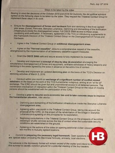 У ньому, зокрема, йдеться, що сторони зобов'язуються підготувати правові рамки щодо «особливого статусу Донбасу», включаючи «формулу Штайнмаєра».