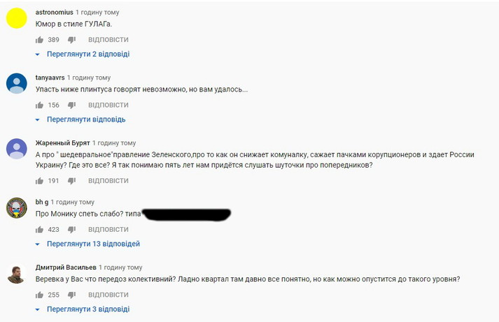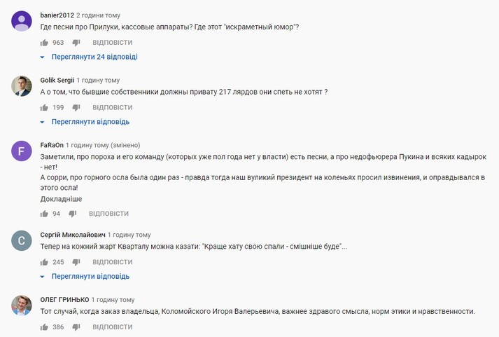 Також зазначимо, що під відео люди активно висловлюються на адресу «кварталівців» у коментарях. Наразі вже зафіксовано 5 585 коментарів. Більшість дописувачів вкрай негативно і критично сприйняли висміювання артистами «95 Кварталу» підпалу будинку колишньої очільниці Нацбанку.