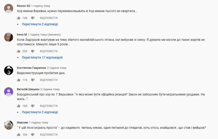 Запис пісні з’явилося на відеохостингу ввечері 20 жовтня, і на даний час має 220 944 переглядів. Серед них відмітку «лайк» поставили 4,9 тисячі глядачів, а своє обурення висловили вже понад 31 тисяч українців.