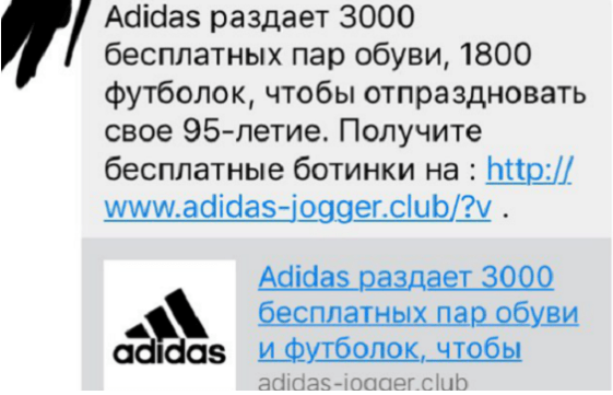 «Аdidas роздає 3000 пар взуття», – такі повідомлення приходять у месенджери жителям різних країн, у тому числі й українцям.