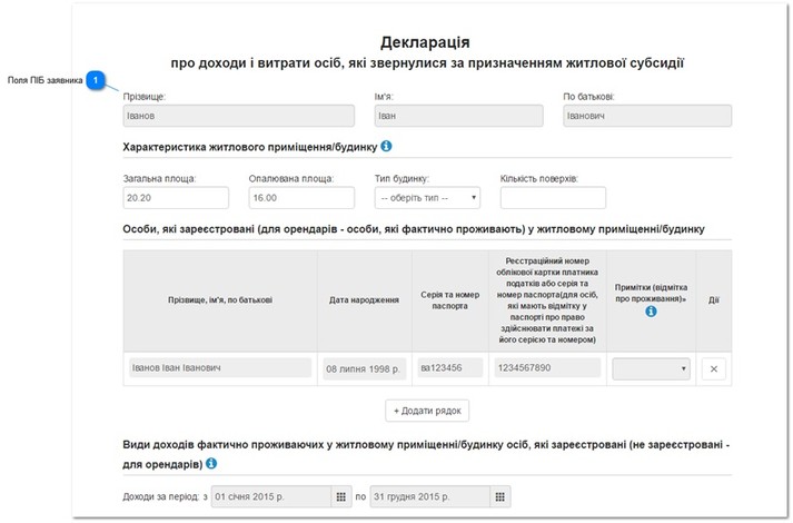 - Декларації про доходи та витрати осіб, які звернулися за призначенням житлової субсидії.