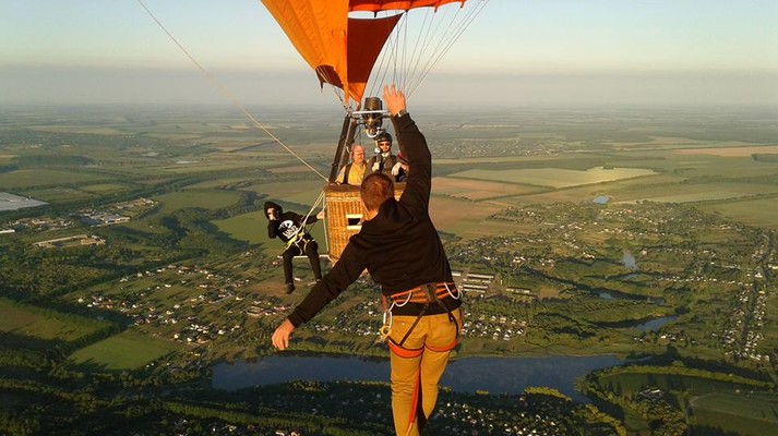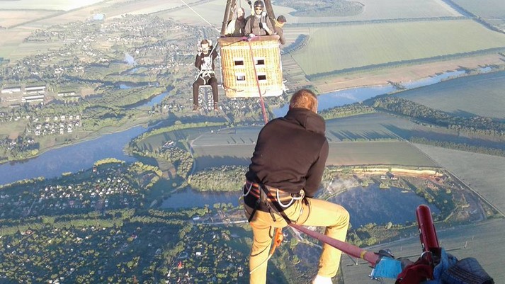 Українець заради рекорду пройшов по мотузці між двома повітряними кулями. Захоплюючі фото