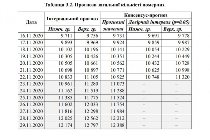 Крім того, науковці прогнозують, що до 29 листопада загальна кількість померлих з Covid-19 досягне 12 797, тобто до кінця листопада кількість жертв хвороби зросте на 3 100.