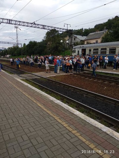Зазначається, що 16 серпня на станції Підзамче Львівської залізниці о 18:25 група осіб вийшла на колію та заблокувала рух приміського поїзда №6096 сполученням Львів – Здолбунів. Причину блокування громадяни арґументували відсутністю достатньої кількості місць у рухомому складі.