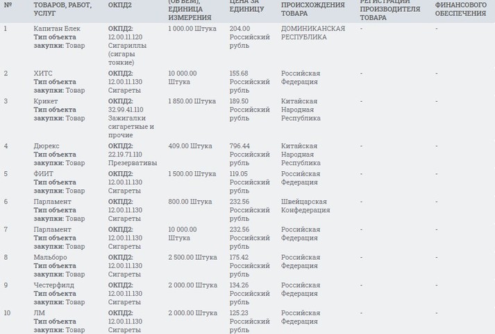 Навіщо управлінню справами президента РФ знадобилися презервативи та для якого саме з органів влади вони призначені, в описі закупівлі не зазначено. Крім засобів контрацепції, підприємство купує цигарки та запальнички.