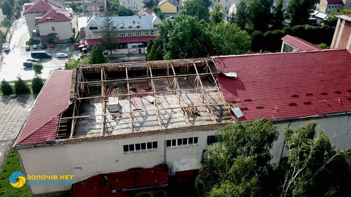 Зокрема, у Золочеві впав дах із Палацу культури імені Білозіра. Раніше в 2019 році дах вже зривало, але в іншій частині приміщення. Там, де боксерський зал.