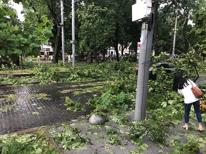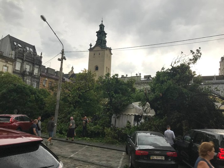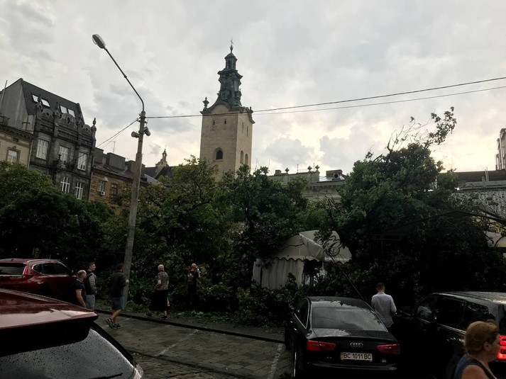 Стихія розгулялася близько 17-ї години 25 червня. Шквальний вітер повалив близько десятка дерев у парку Франка. При падінні дерева пошкодили автомобілі на вулиці Листопадового Чину та біля церкви Святого Юра, на вулиці Соломії Крушельницької.
