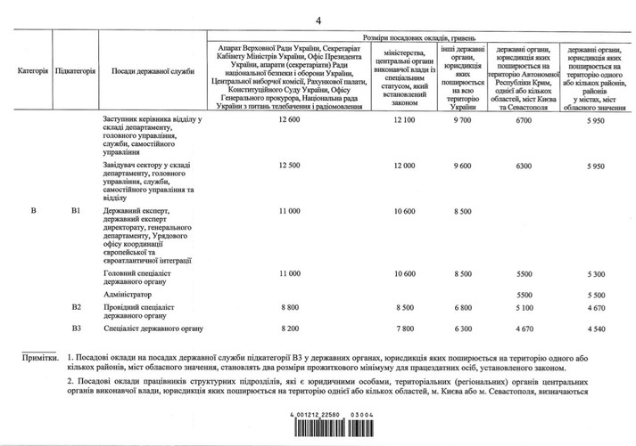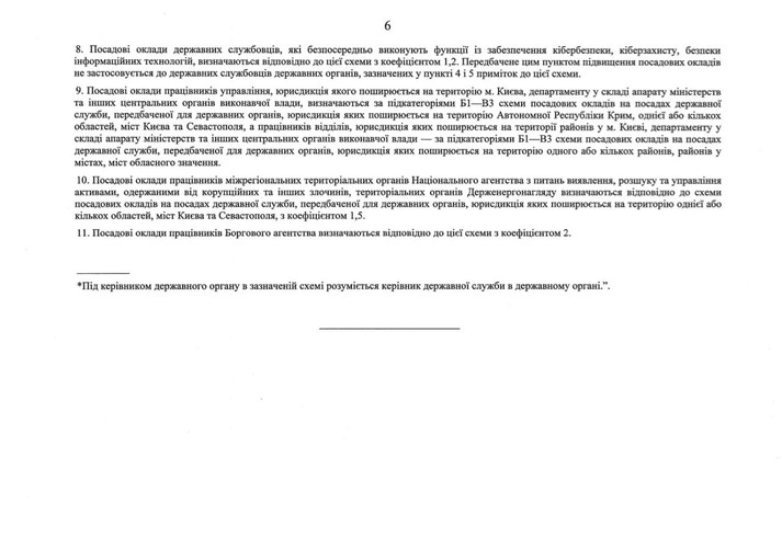 Постановою затверджена «Схема посадових окладів на посадах державної служби з урахуванням категорій, підкатегорій та рівнів державних органів у 2020 році».