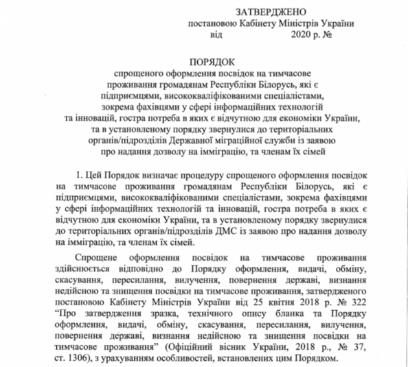 Кабінет міністрів Україні спростив оформлення дозволу на проживання в Україні для висококваліфікованих спеціалістів із Білорусі.