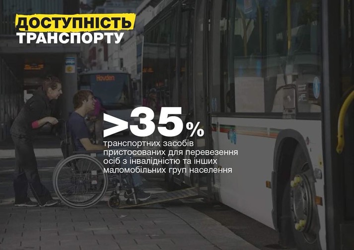 - введення вимог щодо обов'язкової наявності на міських і приміських маршрутах автобусів, пристосованих для перевезення осіб з інвалідністю, в кількості 35% до кінця 2019 року, з 2020 року - 50%;