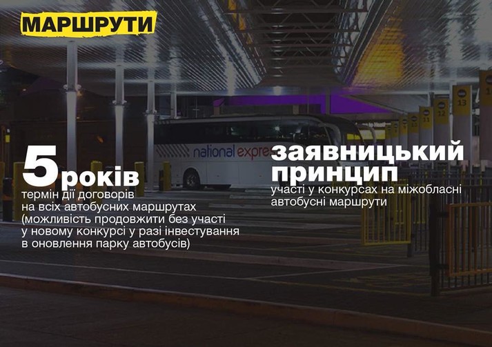- введення конкурсу на міжобласні автобусні маршрути за заявницьким принципом;