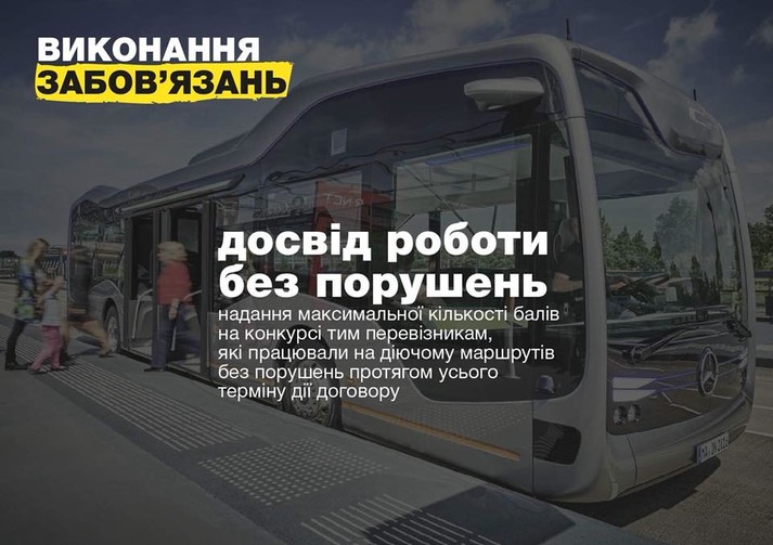 - перевагу отримають перевізники, що пропонують автобуси з низькою підлогою, електробуси, автобуси з більшою категорією екологічності (Євро 3 - Євро 6).