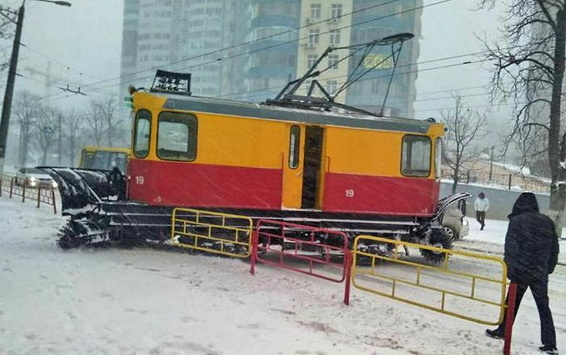 В Одесі зійшов з рейок снігоприбиральний трамвай і ледь не збив пішоходів