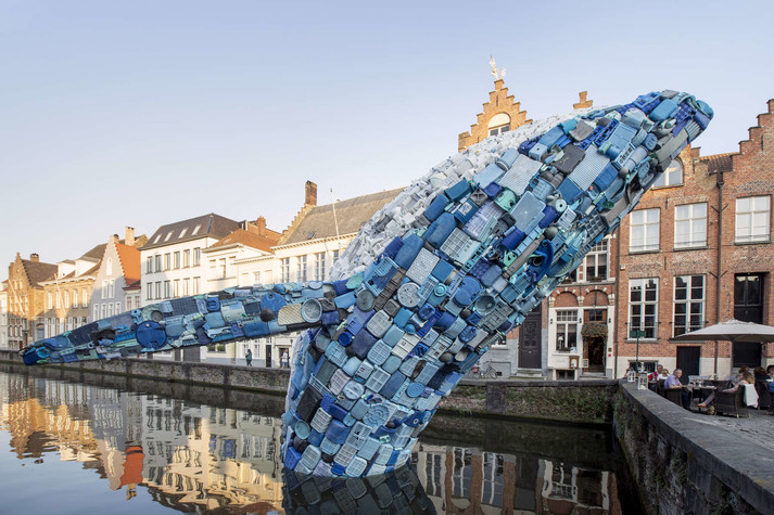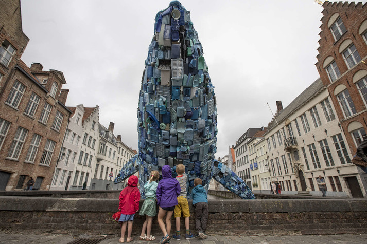 У бельгійському місті Брюгге дизайнери бюро Studio KCA побудували величезного кита із 5 тонн пластикового сміття, яке знайшли у Тихому океані
