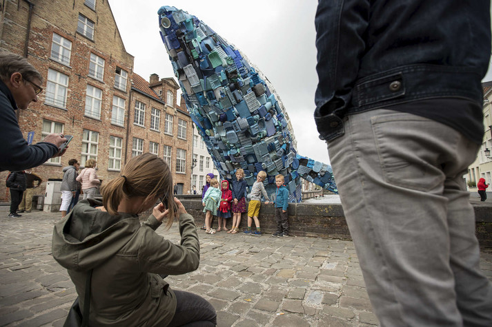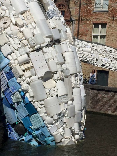 Зі сміття дизайнери звели чотирьохповерхового кита. Інсталяцію розмістили в одному з каналів міста у рамках трієнале в Брюгге.
