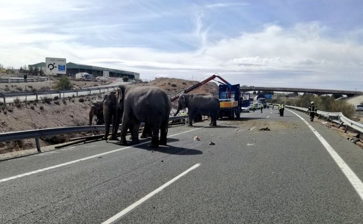 Muere un elefante y tres quedan heridos tras un accidente en Albacete. Los transportaban para explotarlos en un circo. #MalditosCircosConAnimales @NuriGago @DANIROVIRA @LeticiaDolera @_sararivero_ @PozaNathalie @ruthtoledano @NathalieSesena pic.twitter.com/kyLFTjg8QT