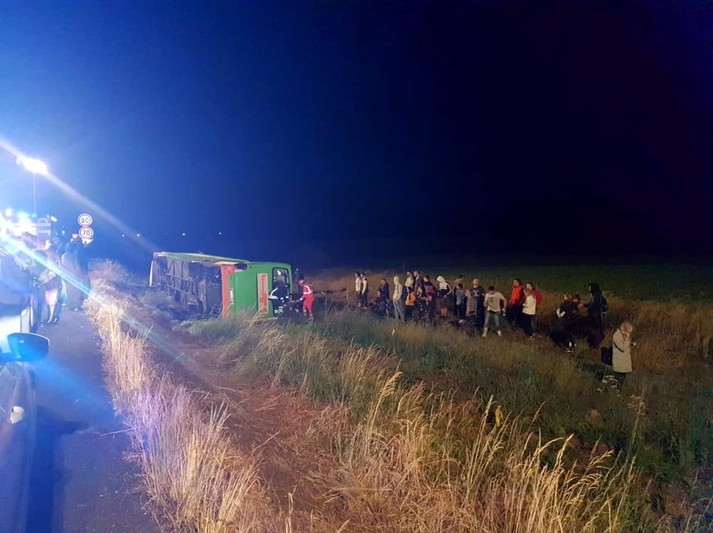 Під час руху водій автобуса не впорався з кермуванням, автобус перекинувся.