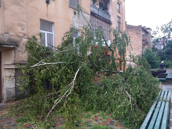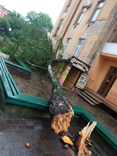 В Івано-Франківську через сильний вітер і зливу падали дерева: фото