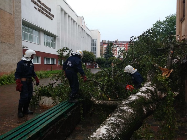 У понеділок, 27 липня, в Івано-Франківську через негоду на вулиці Чорновола на під'їзд впало дерево. Рятувальники зараз усувають наслідки події.