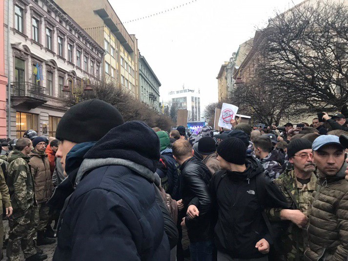 Після цього правоохоронці вишикувались кордоном між протестувальниками та прихильниками Порошенка.