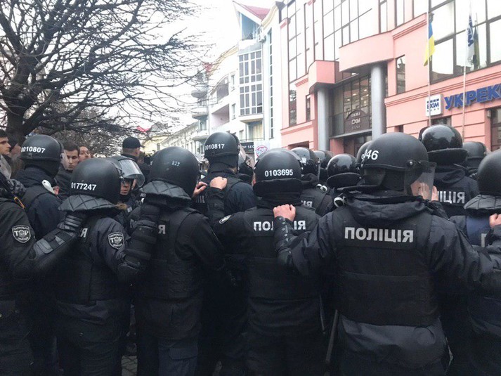На місці сутичок начальник обласної поліції Володимир Голубош.