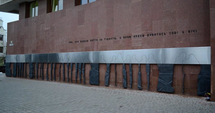 З нагоди Дня Гідності та Свободи і третьої річниці Майдану, в Івано-Франківську на стіні адмінбудівлі на вулиці Грушевського 21, встановили пам'ятний знак героям Небесної сотні.