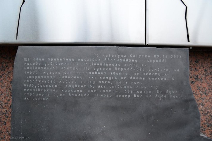 Центральним місцем інсталяції стали слова присвяти «Тим, хто віддав життя за гідність, з якою можеш дивитись собі у вічі».