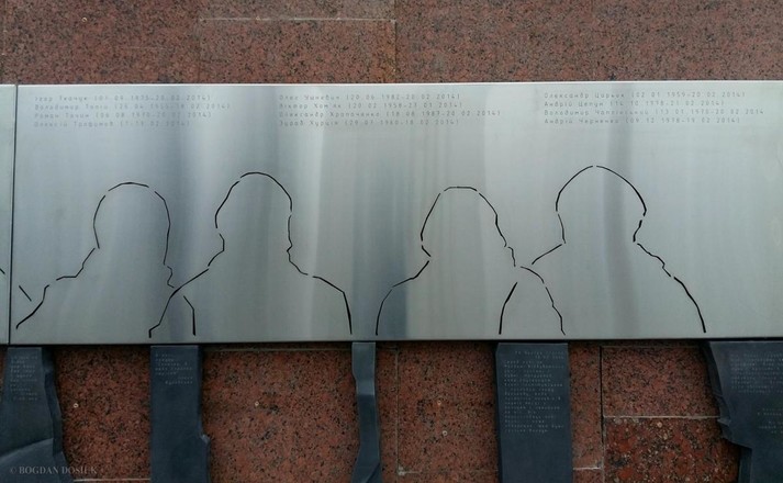 На пам'ятній стіні викарбувано імена всіх героїв Небесної сотні