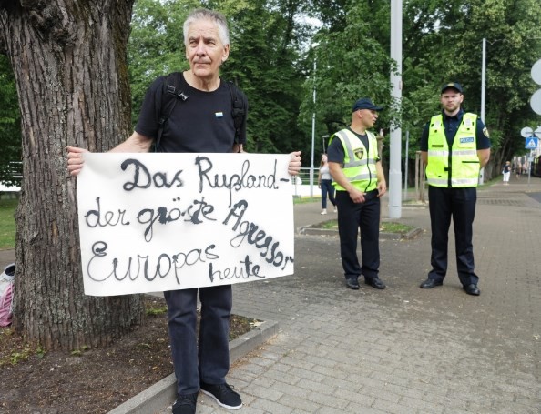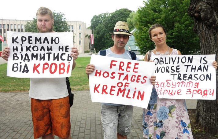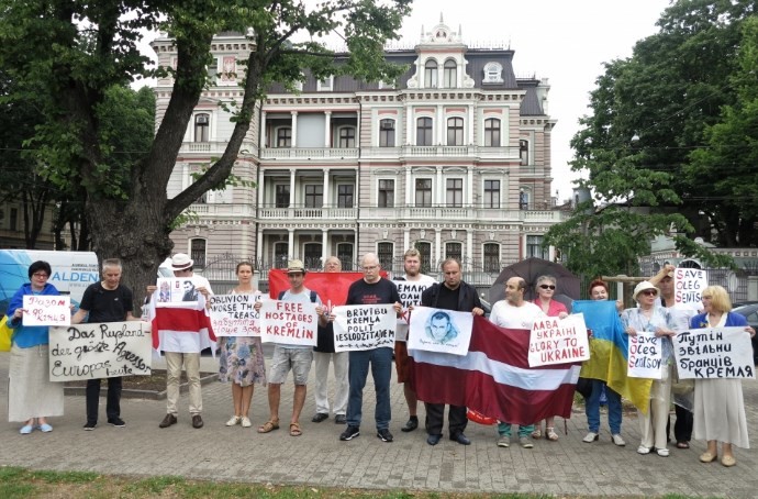 Пікетування Російського посольства в Ризі проходило 12 липня. На ньому були плакати з гаслами: «Путін, звільни бранців Кремля!», «Кремлю ніколи не відмитися від крові», «Слава Україні. Glory to Ukraine», «Свободу політичним в’язням», «Свободу кримським мусульманам», «Свободу Сенцову».