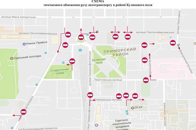 «До уваги мешканців та гостей Одеси! 2 травня з 07:00 до 22:00 вводиться тимчасове обмеження руху в районах Соборної площі та Куликового поля», - сказано в повідомленні.