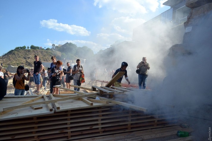 В Одесі активісти потрощили новобудову на пляжі, є затримані