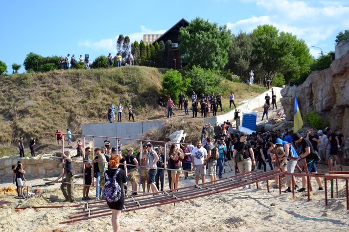 Наразі противники будівництва підпалили риштування, викинули в басейн ємності з піском і приступили до демонтажу металевого каркаса на піску. Незабаром активісти планують знести прибудови з гіпсокартону.
