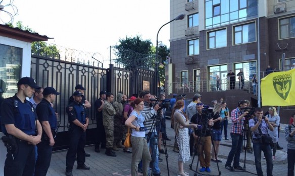 Повідомляється, що громадські активісти прийшли сюди через інформацію про те, що сьогодні в стінах консульства Російської Федерації, за їхніми даними, запланували проведення «святкового банкету» на честь чергової річниці Дня Росії.