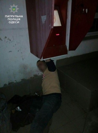 За словами самого одесита, вночі він побачив, що нижня частина терміналу прочинена. Після цього він спробував перевірити, чи немає в терміналі грошей. Однак рука застрягла, і він дві години пролежав у незручному становищі під терміналом. Близько п'ятої ранку він попросив одного з перехожих викликати «швидку».