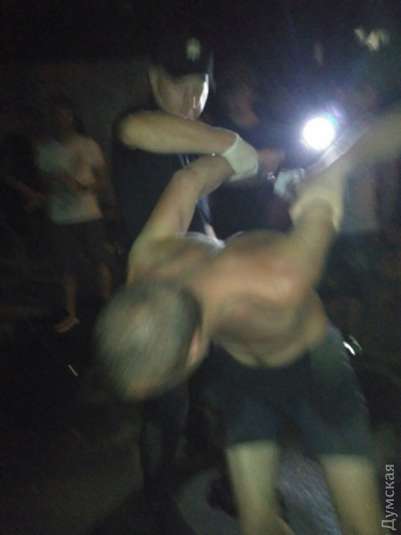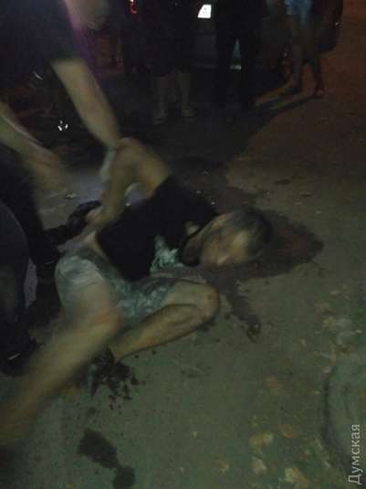 Відпочиваючі у дворі люди затримали трьох нападників, одному, з зашморгом, вдалося втекти. Зараз потерпілий знаходиться в лікарні з травмами шиї та обличчя, злочинців поліція відвезла.