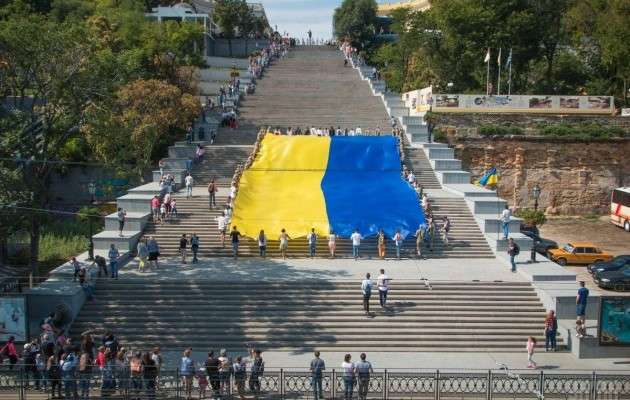 В Одесі Потьомкінськими сходами пронесли величезний прапор