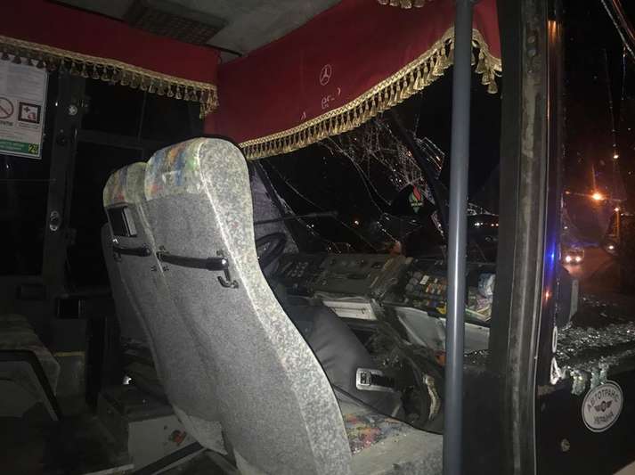 В результаті ДТП 12 осіб травмовано, одна людина загинула. На місці події працює слідчо-оперативно група поліції та працівники медичної служби.
