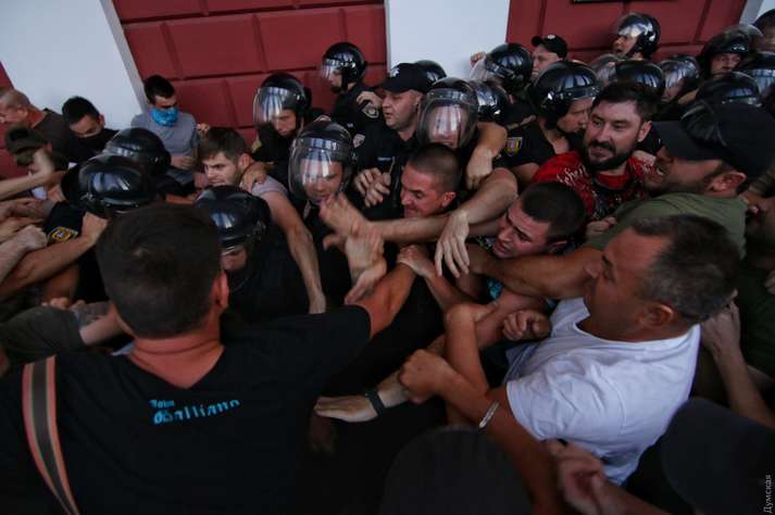 В Одесі відбулося декілька сутичок між правоохоронцями і людьми, що прийшли під будівлю мерії вимагати розмови із міським головою Генадієм Трухановим після пожежі у міському дитячому таборі «Вікторія», який забрав життя трьох дітей. Про це пише «Думська».