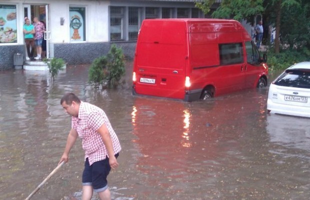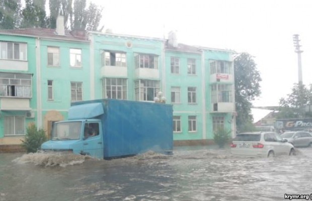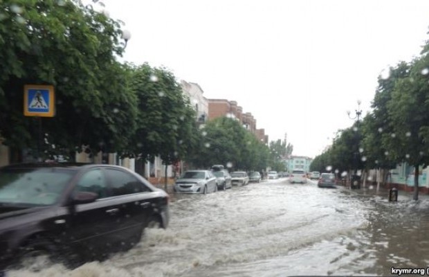 Під водою опинилися вулиці Карла Маркса і Радянська, передає Крим. Реалії.