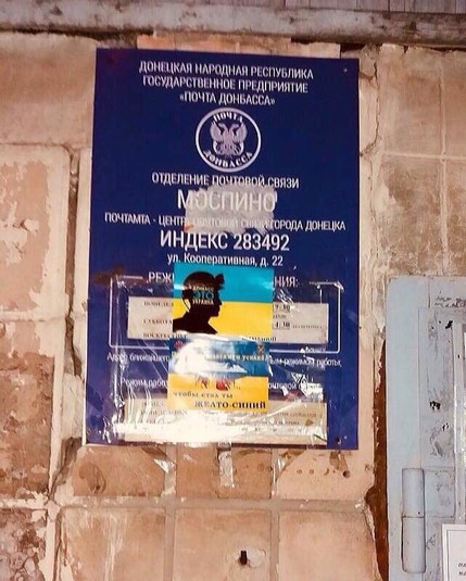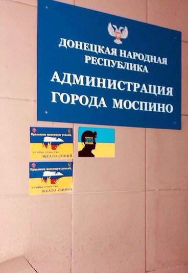 В окупованому Донецьку українські патріоти обклеїли листівками установи окупантів
