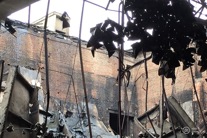 У Калінінському районі тимчасово окупованого Донецька згоріла будівля колишнього кінотеатру «Донецьк». Про це повідомляє видання «Новини Донбасу».