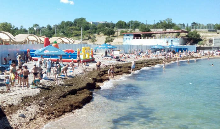 Більше місяця тому в окупованому Севастополі офіційно відкрилися міські пляжі. Але зараз комфортно відпочивати на них неможливо: в декількох метрах від відпочиваючих гниють гори водоростей, які не поспішають прибирати.