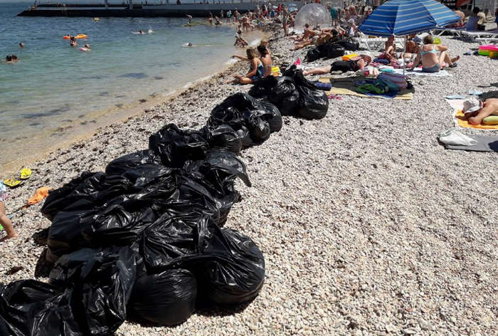 Про те, що севастопольські пляжі завалені сміттєвими пакетами і гниють морськими водоростями городяни повідомили в соцмережах. Як повідомляє видання ForPost, на пляжах «Парк Перемоги» і «Сонячний» відпочиваючі майже тиждень загоряють по сусідству з гниючої морською травою.