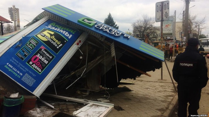 Сьогодні, 11 квітня, окупаційна влада почала примусовий демонтаж торгових об'єктів у районі вулиці Козлова на Центральному ринку в Сімферополі.