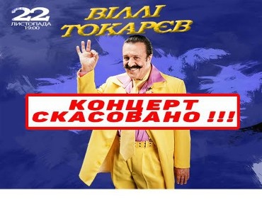 Раніше «Главком» повідомляв, що сольний концерт співака Віллі Токарева, який мав відбутися в столичному «Палаці Україна», скасовано.