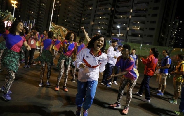 Ввечері олімпійський вогонь добрався до олімпійського містечка в Ріо, де відбулася вітальна церемонія.