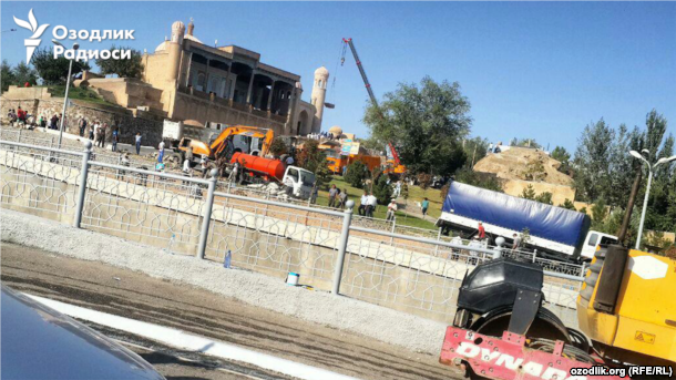 Роботи з будівництва гробниці поруч з мечеттю Хазрат Хизр недалеко від мавзолею Шахи Зинда проводяться в посиленому режимі, за даними джерел Радіо Озодлік, до будівельних робіт залучені понад сотня людей, на місці працює екскаватор, кран та інша техніка.